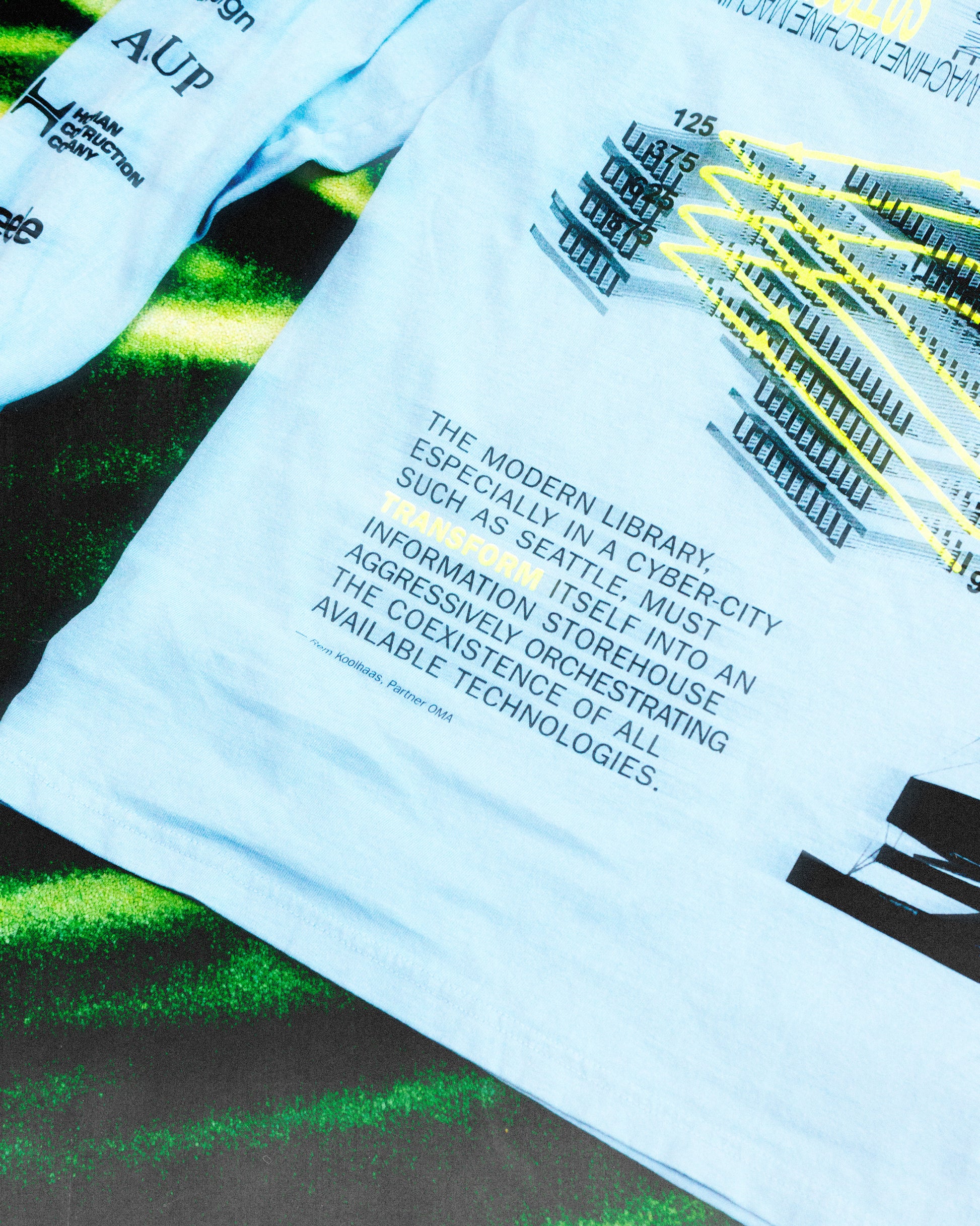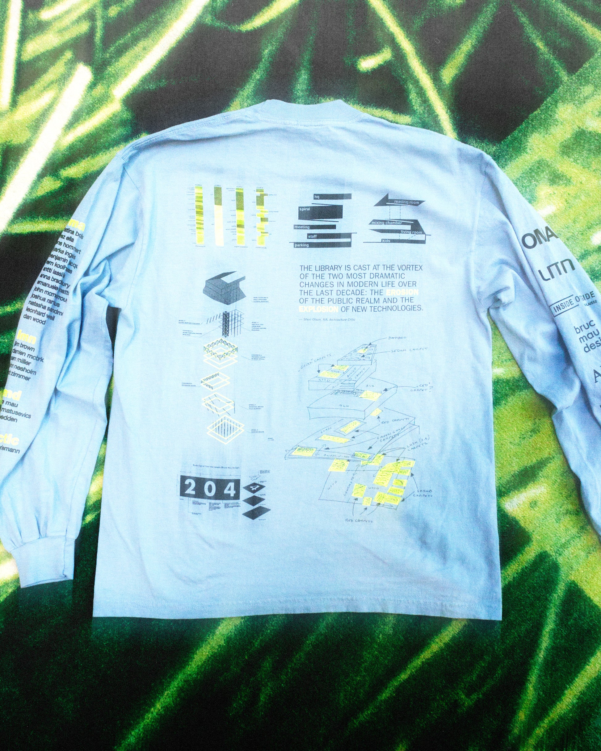 - This longsleeve tee features graphics, diagrams, sketches and words about the Seattle Central Library. Most were pulled from OMA's 1999 project proposal. Within it the Dutch architects addressed the state of the public library as it entered a new millennium, and how Seattle's ascendent position in the Information Age required a unique approach.
