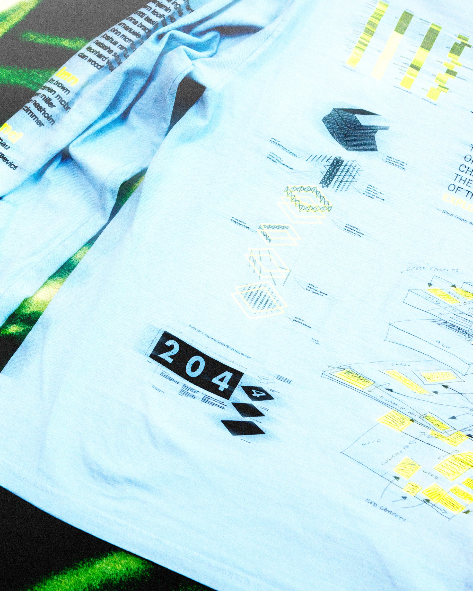 - This shirt features everything that went into the Central Library: the firms that worked on it, the words written about it and its design and construction. The tee's color is reminiscent of the library's steel structure and its pops of neon echo the bright escalators that transport people from floor to floor.