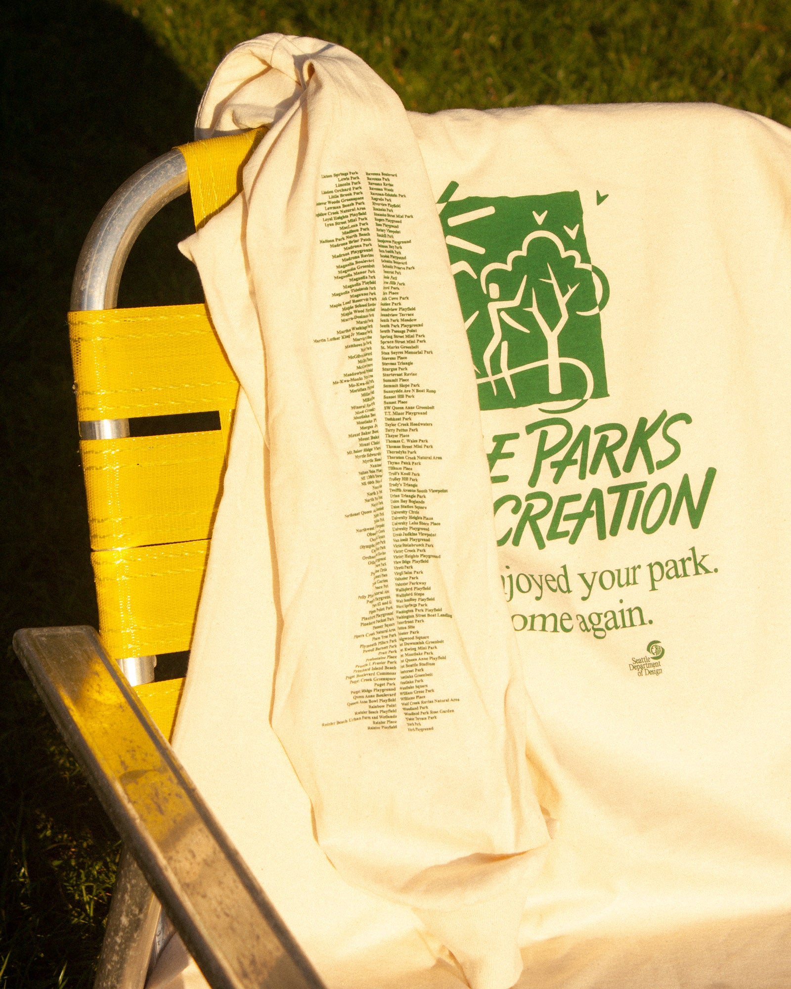 - This is a tee we've always wanted to find at a Goodwill but never have. This shirt has the names of every Seattle park and playfield on either sleeve, and the back of the shirt features the Seattle Parks and Recreation logo and the department's slogan. This slogan reminds us who city parks belong to, and how integral they are to our civic life. All printed in green ink on a natural-colored tee.