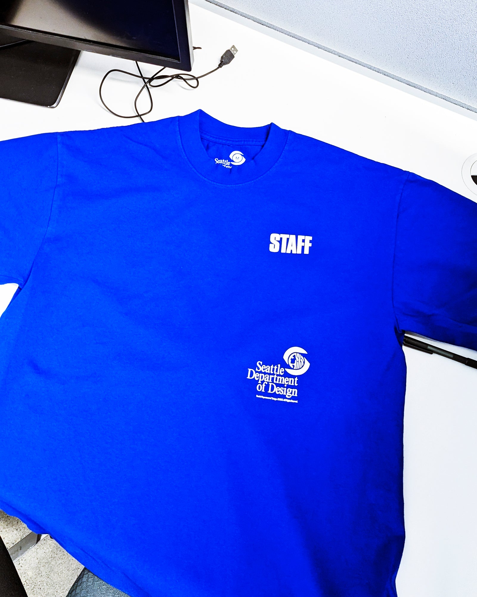 - We first made this shirt years ago, in black, and swore we'd quickly reprint it in blue. It's a little late, but we finally did it. This color is reminiscent of the blue you'll see in many official city communications. Felt like the perfect fit for something so unofficial.