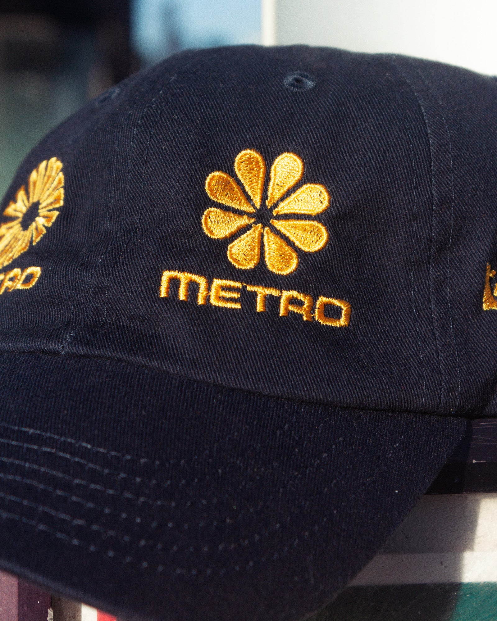 - We like to think of this hat as a sort of "greatest hits" Metro brand compilation. On the front are the logos used from the 70s through the early 90s: the sun and flower. If you look closely, you can see that the sun logo is actually composed of several M's stylized to look like rays of light. The flower logo, for its part, neatly symbolizes togetherness.