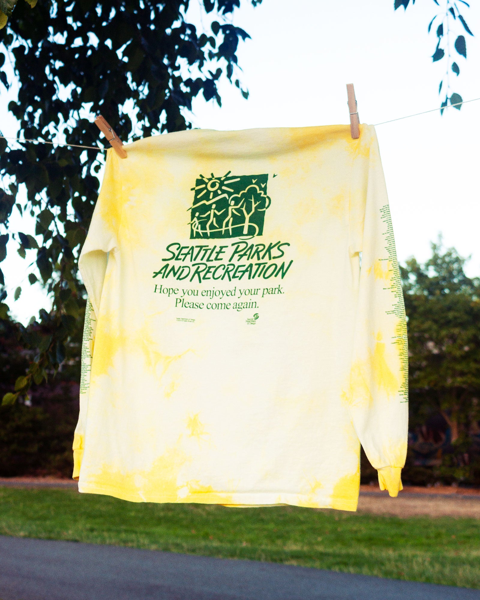 - Printed in green ink on a white tee, this shirt features the names of every Seattle park and playfield on either sleeve. The back of the shirt features the Seattle Parks and Recreation logo and the department's slogan. A slogan that reminds us who city parks belong to, and how integral they are to our civic life.