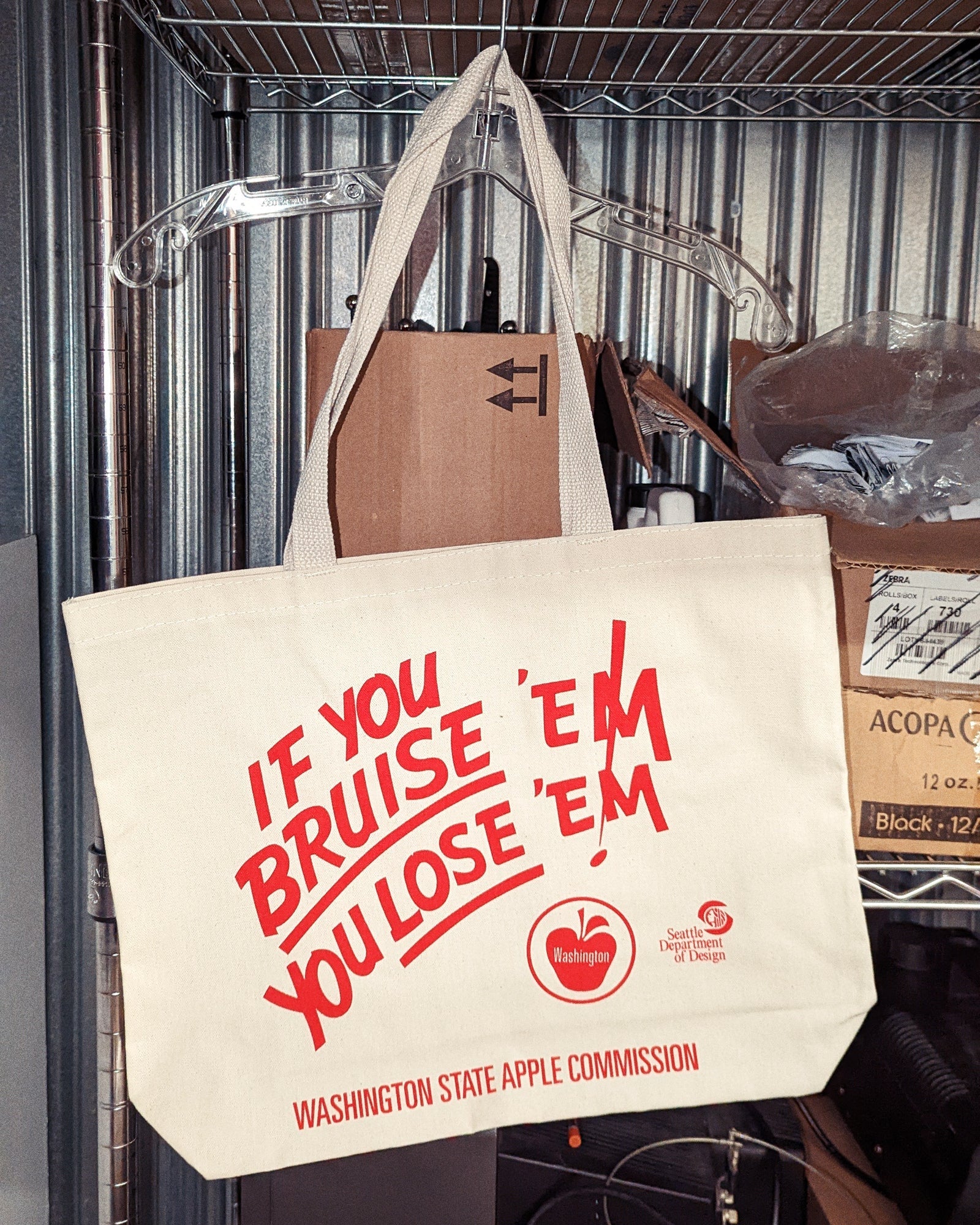 "If You Bruise 'Em, You Lose 'Em!" was a message directed at grocery handlers and those in charge with transporting Washington's natural bounty. A good apple isn't tough, and it needs to be handled with care before reaching the customer.