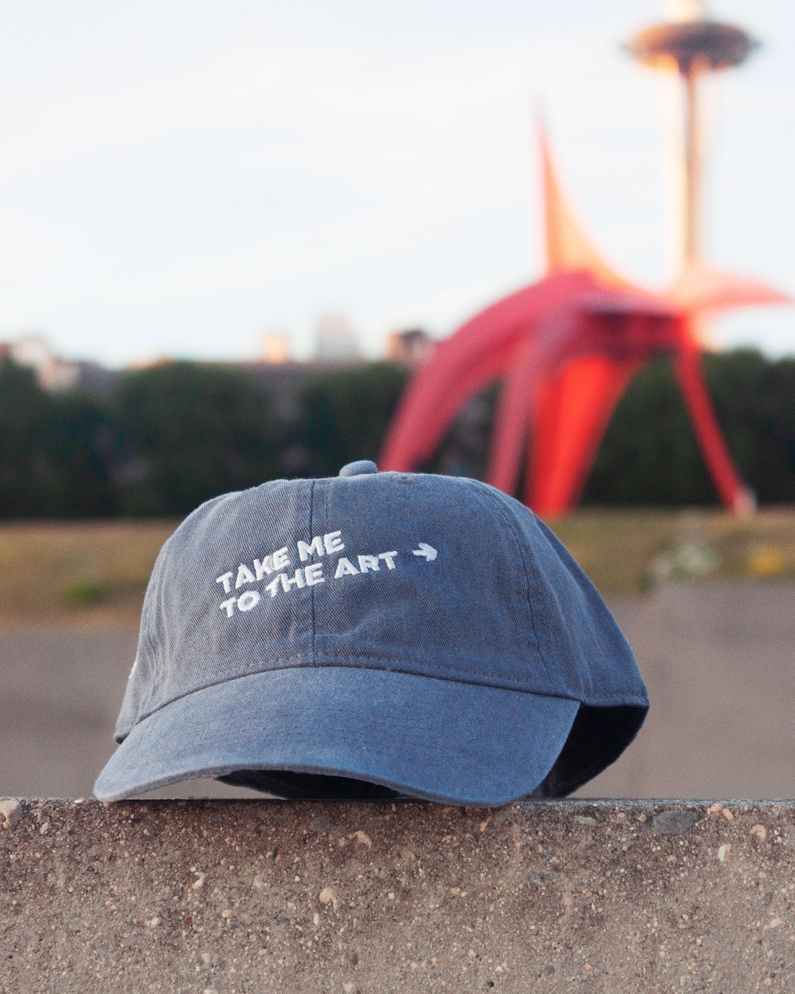 The Seattle Department of Design took this iconic demand and embroidered it on a cap. The cap not only implies "hey, I like art" but also neatly addresses our pandemic-induced artlessness of these last few months. This garment-dyed hat also features a SDoD logo on the side, and the slogan "SAM Connects Art to Life" on the back.
